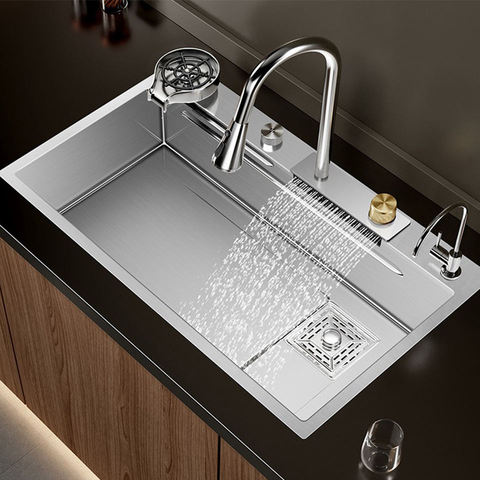 Tendenze TikTok lavello da cucina in acciaio inox All-in-One con rubinetto a cascata a discesa scarico con anima valvola in ceramica